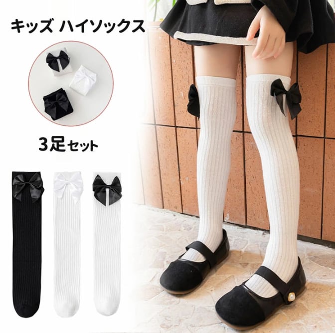 ■商品:靴下 ニーハイソックス リボン付き 女の子 子供用 3足セット 35/42㎝ ハイソックス フォーマル お受験 お祝い 韓国 ファッション コーデ おすすめ カジュアル きれいめ 大きいサイズ 人気 ゆったり 20代 30代 40代 50代