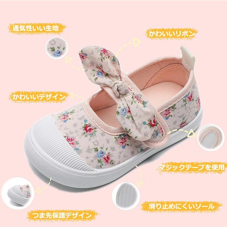 ベビーシューズ 上履き 女の子 子供用 4色 13.4-16.8㎝ ベビー 上靴 スクールシューズ 子供靴 幼稚園 保育園 26LT547