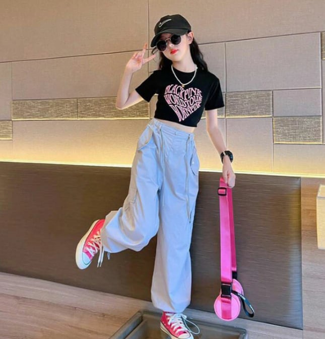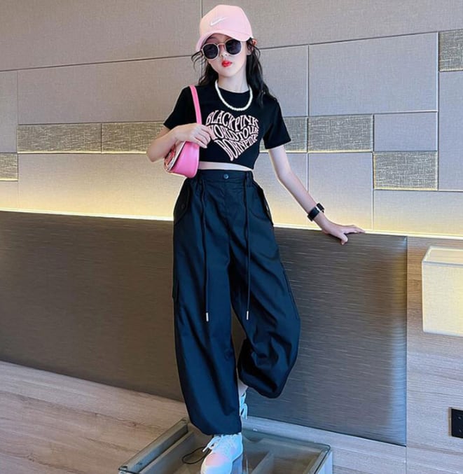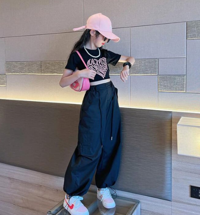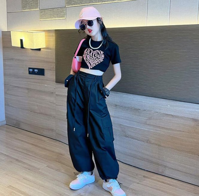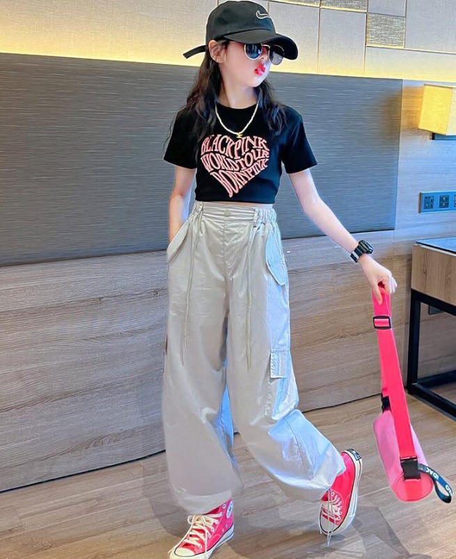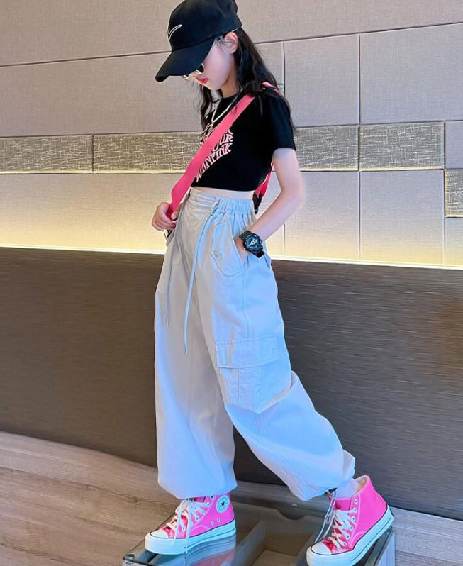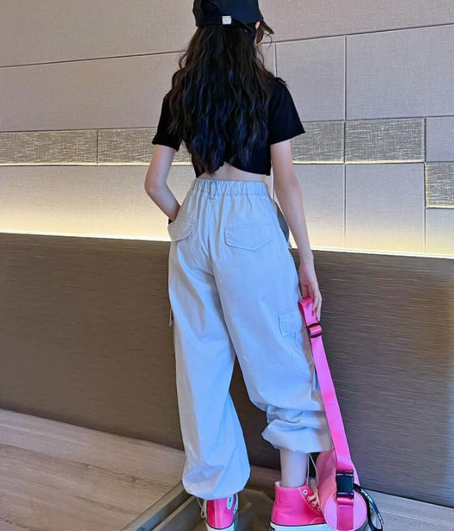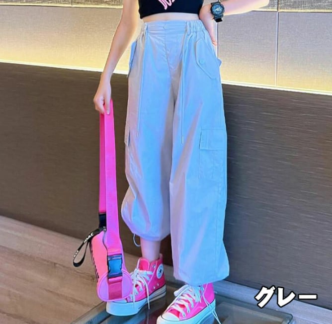 カーゴパンツ 薄手 女の子 子供用 2色 120-170㎝ ゆったり ダンス ストリート系 ロングパンツ 26LT549