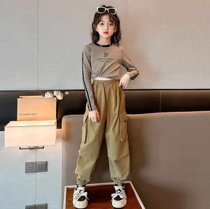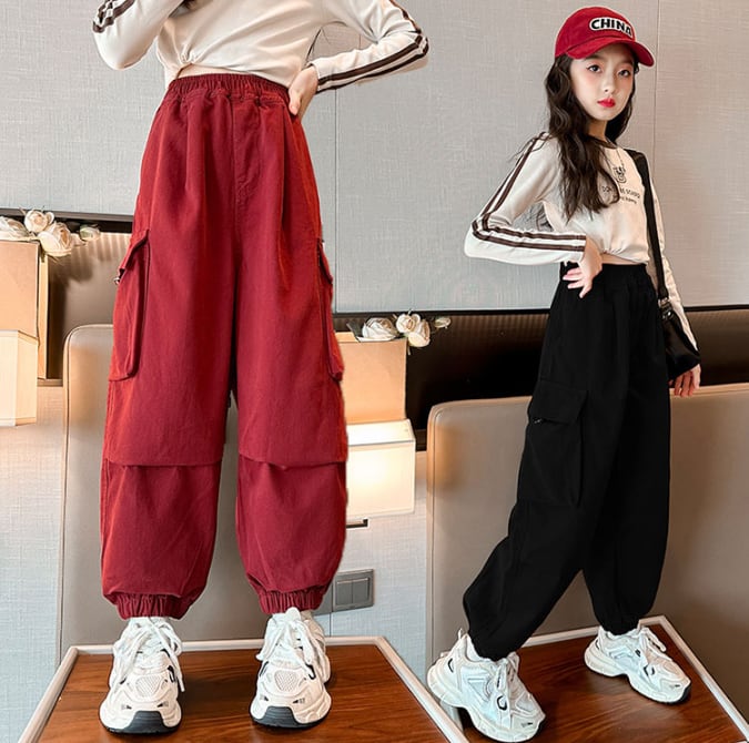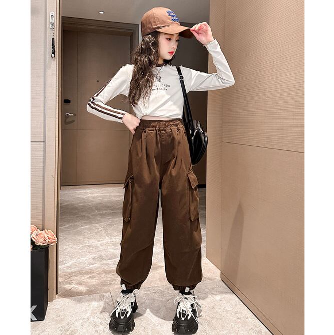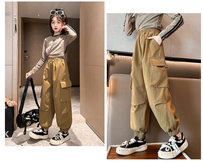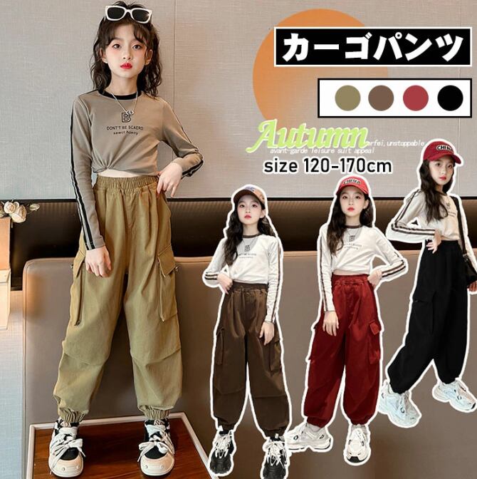 カーゴパンツ 女の子 子供用 4色 120-170㎝ ゆったり ダンス ストリート系 ロングパンツ 26LT551