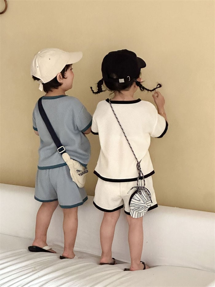 ★特徴:この夏にぴったりなテクスチャーとデザインが魅力のセットアップです!ワッフル生地のtシャツとショートパンツの組み合わせは、涼しくて動きやすく、アクティブな子供たちに最適です。兄弟や姉妹でのお揃いコーデを楽しむこともでき、家族での思い出作りには欠かせないアイテムです。公園での遊びや休日のお出かけにピッタリのカジュアルスタイルを提案します。