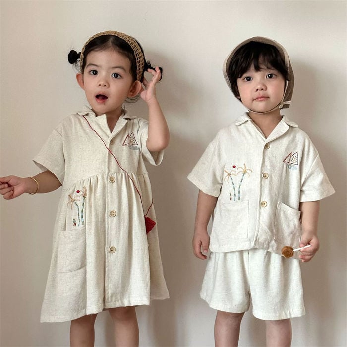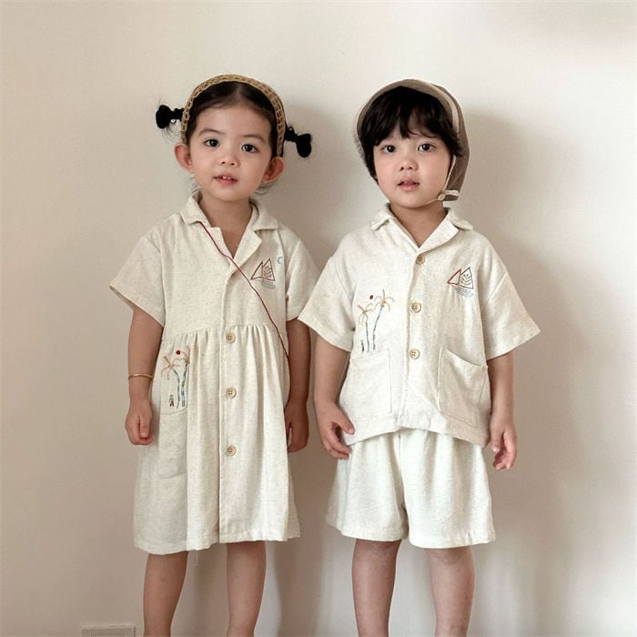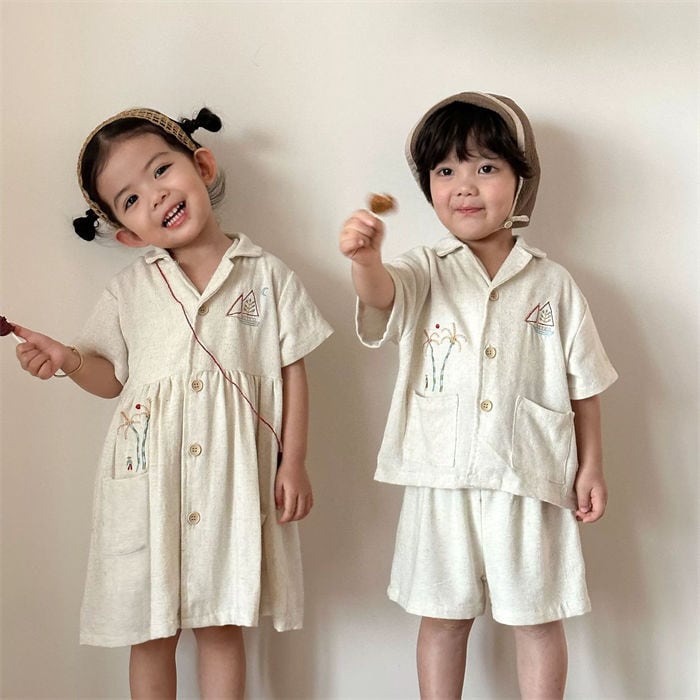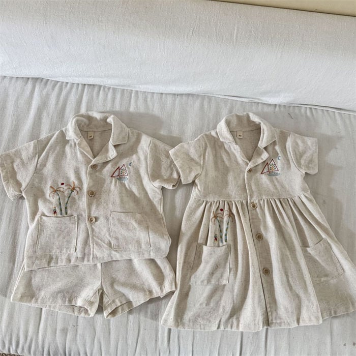 ★特徴:明るい夏の日差しにぴったりなワンピースセットアップです!半袖シャツとショートパンツの組み合わせは、動きやすく、アクティブな子供たちのためにデザインされています。兄弟や姉妹でのお揃いコーデにも最適なアイテムで、家族みんなで楽しい思い出を作ることができます。公園での遊びや休日のお出かけに、おすすめのカジュアルスタイルです。