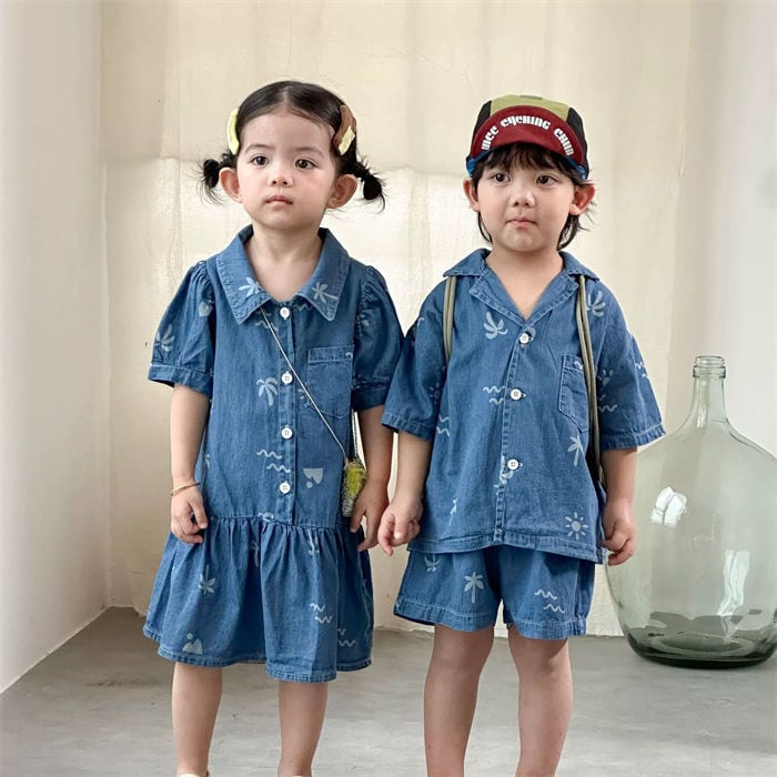 ★特徴:デニム素材のワンピースセットアップが登場しました! この夏のお出かけにぴったりな半袖シャツとショートパンツの組み合わせは、涼しさと快適さを兼ね備えています。兄弟や姉妹での仲良しコーデにも最適で、家族全員で楽しい思い出を作ることができます。公園での遊びやバーベキュー、休日の外出におすすめのカジュアルでオシャレなスタイルです。