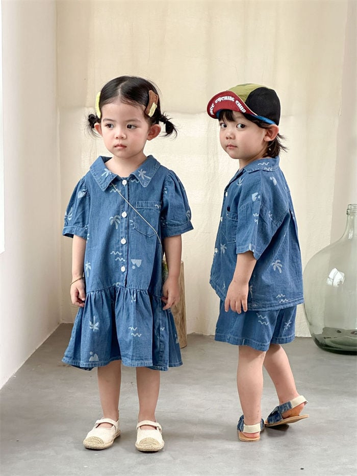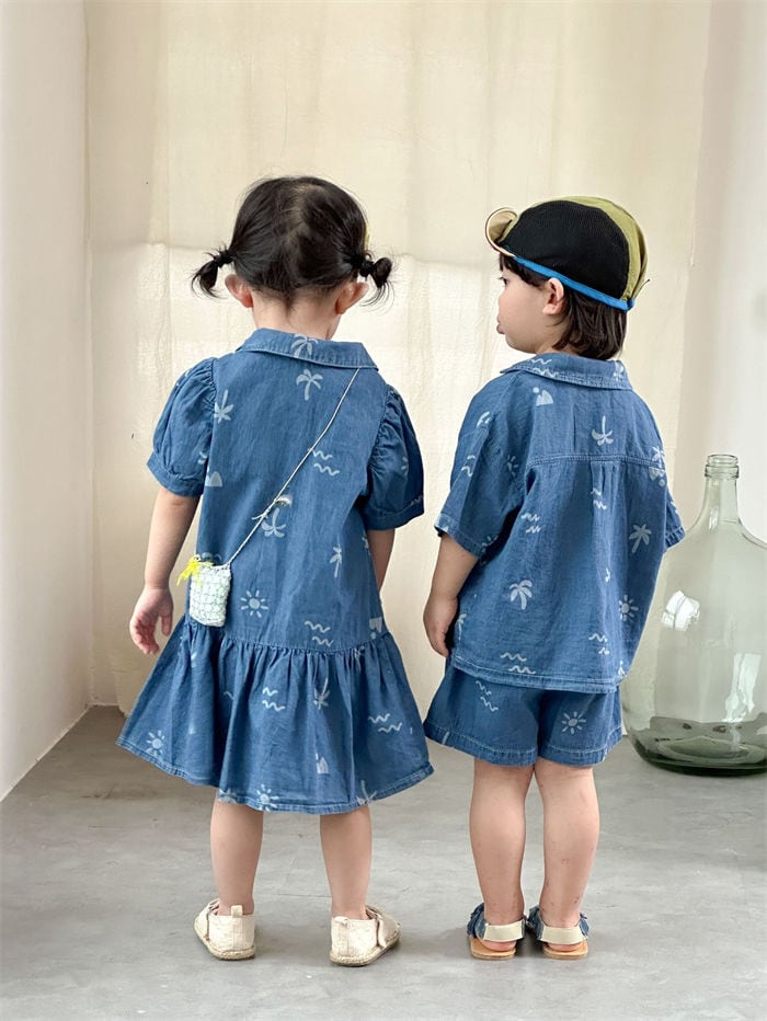 ワンピース セットアップ デニム 女の子 男の子 子供用 80-150㎝ 兄弟 姉妹 半袖シャツ ショートパンツ キッズ ベビー 夏 26LT559