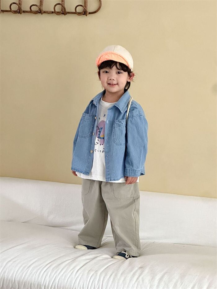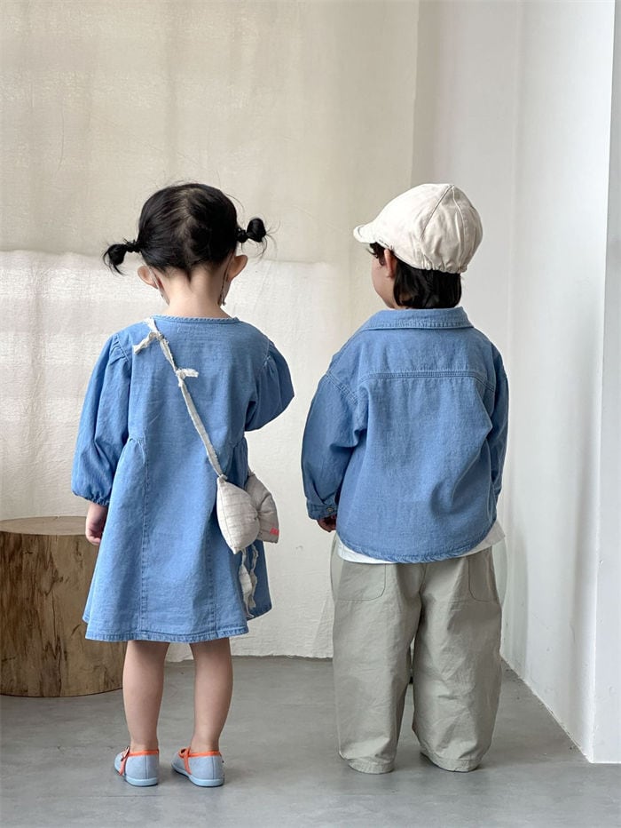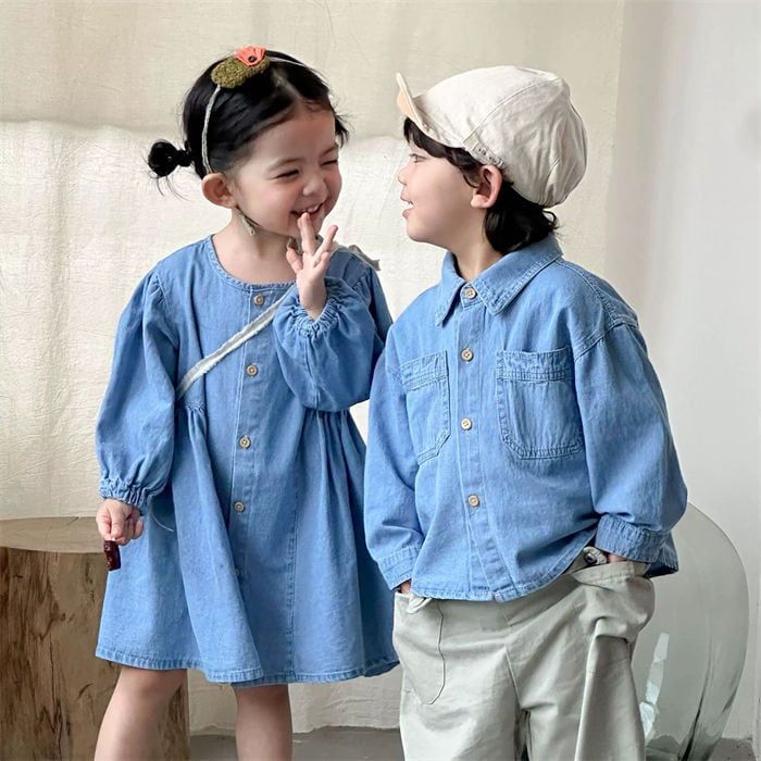 ★特徴:カジュアルなおしゃれを楽しむワンピースデニムシャツが登場!男の子、女の子どちらにもぴったりなデザインで、兄弟や姉妹でのお揃いコーデにも最適です。春秋の季節にぴったりな素材感と、シンプルながらも可愛らしさを引き立てるスタイルが魅力です。公園遊びやお友達とのお出かけ、ちょっとしたおしゃれ着としてもバッチリ活躍します。