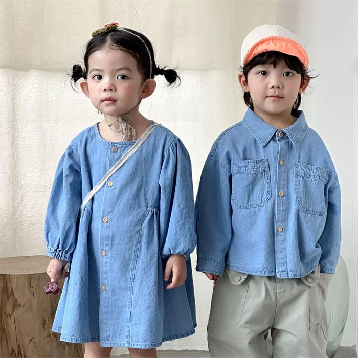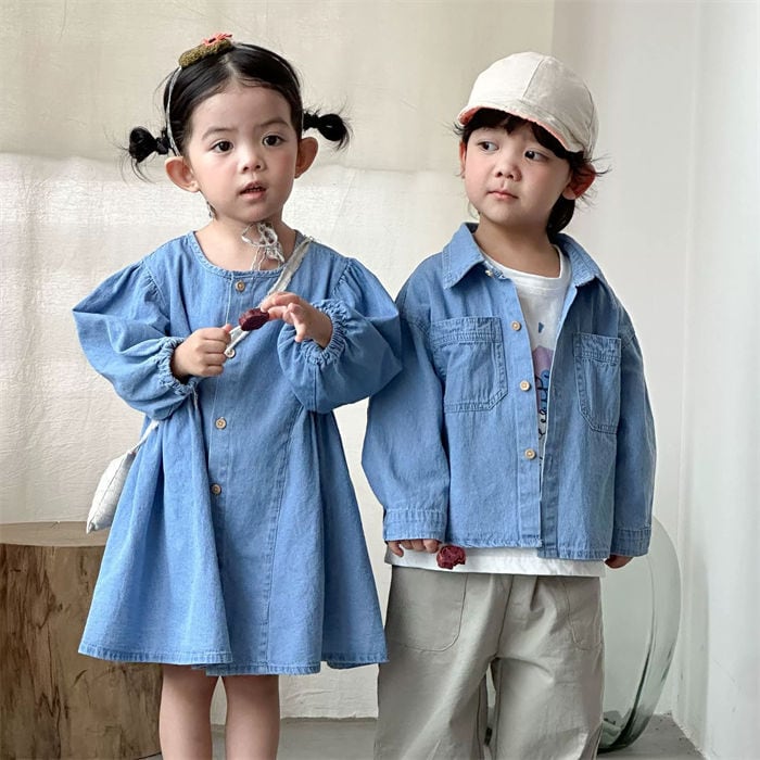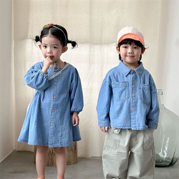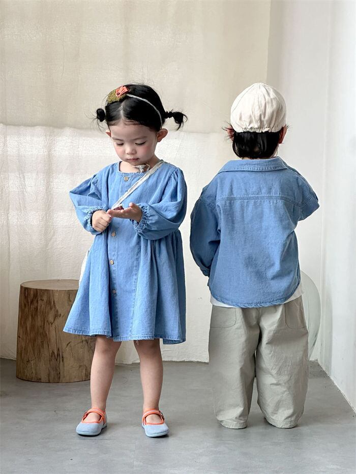 ワンピース デニムシャツデニム 女の子 男の子 子供用 80-150㎝ 兄弟 姉妹 カジュアル かわいい キッズ ベビー 春秋 26LT562