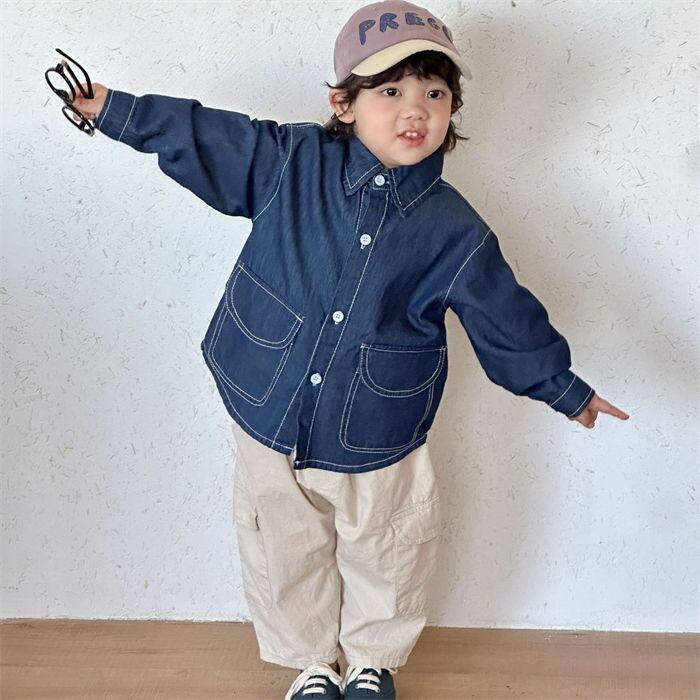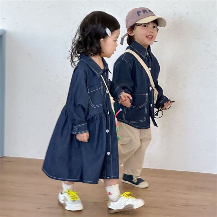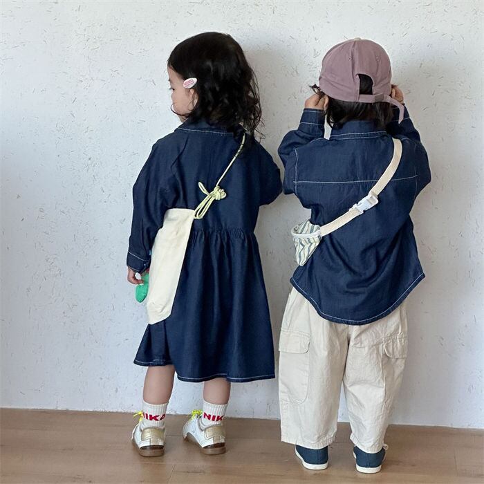 ★特徴:おしゃれでかわいいワンピースデニムシャツが新登場!男女問わず着こなせるデザインで、兄弟や姉妹でのお揃いコーデにもぴったりです。春秋の季節に最適な素材感は、活発なキッズに大人気。公園遊びやお友達とのお出かけ、さらにはカジュアルなおしゃれ着として大活躍間違いなしです!