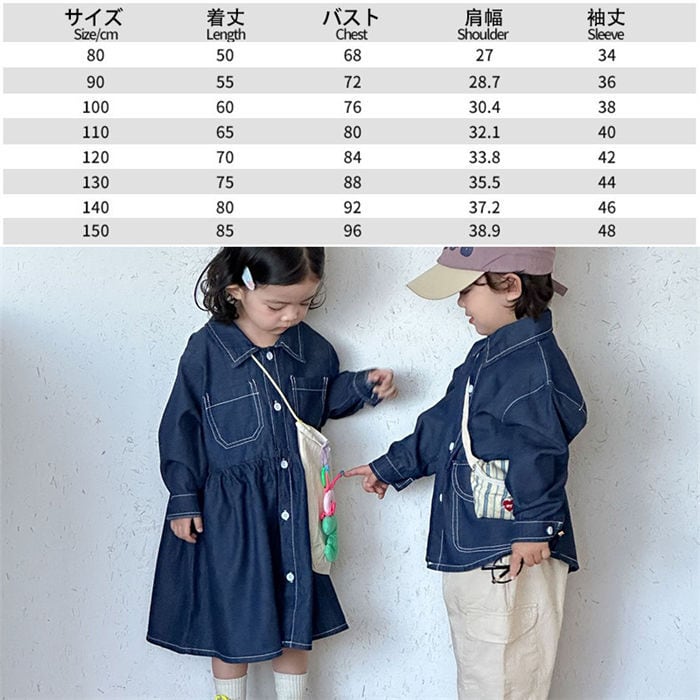 ■商品:ワンピース デニムシャツ デニム 女の子 男の子 子供用 80-150㎝ 兄弟 姉妹 カジュアル かわいい キッズ ベビー 春秋 韓国 ファッション コーデ おすすめ カジュアル きれいめ 大きいサイズ 人気 ゆったり 20代 30代 40代 50代