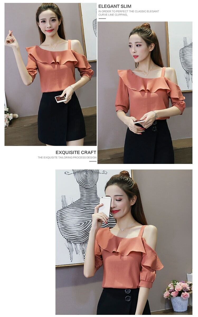 ★商品名:オフショルダートップス 大きいサイズ レディース ブラウス 半袖 肩出し 肩魅せ フリル セクシー ショート丈 フェミニン 可愛い エレガント LT-3190