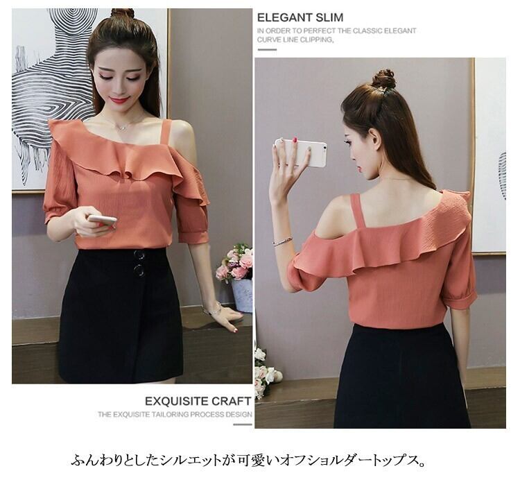 ★特徴:オフショルダートップス 大きいサイズ レディース ブラウス 半袖 肩出し 肩魅せ フリル セクシー ショート丈 フェミニン 可愛い エレガント