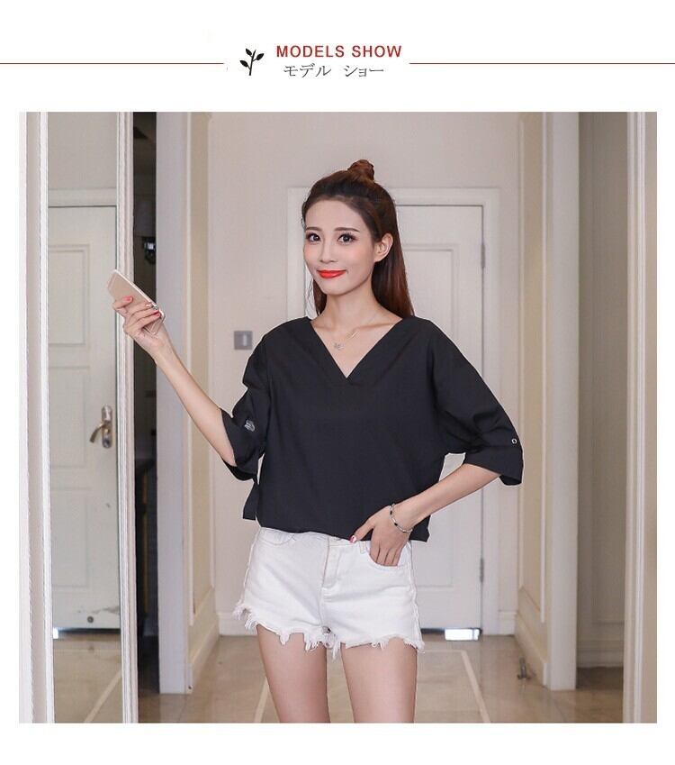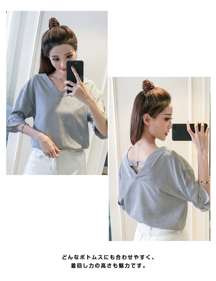 ★商品名:チュニック ブラウス スキッパーシャツトップス Vネック 五分袖 夏