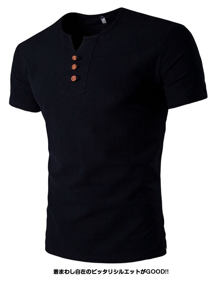 Tシャツ メンズ ヘンリーネック Uネック 半袖 トップス 無地 3132