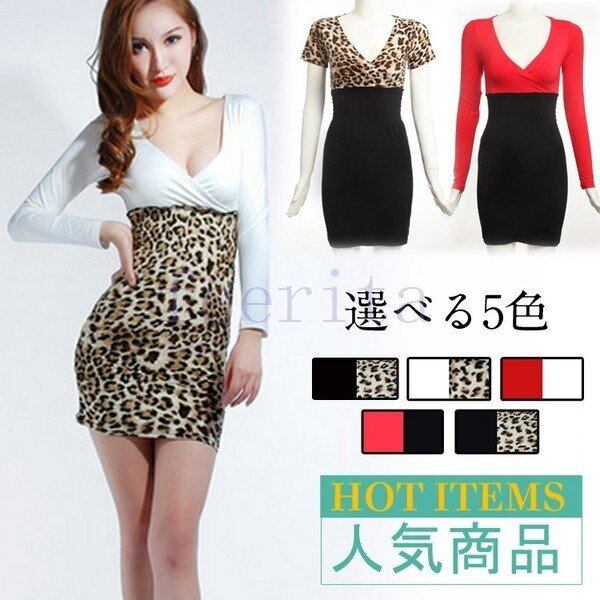 ★特徴:ホワイト&レッド ホワイト&ヒョウ柄 レッド&ブラック ヒョウ柄&ブラック ホワイト&ブラック 深Vネック ドッキングワンピース セクシー フェミニン タイトワンピース ミニ丈 通勤 OL風 フォーマル 切り替えワンピース ショー