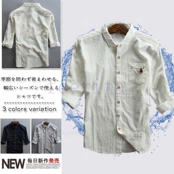 シャツ メンズ 七分袖 リネン カジュアルシャツ 3057