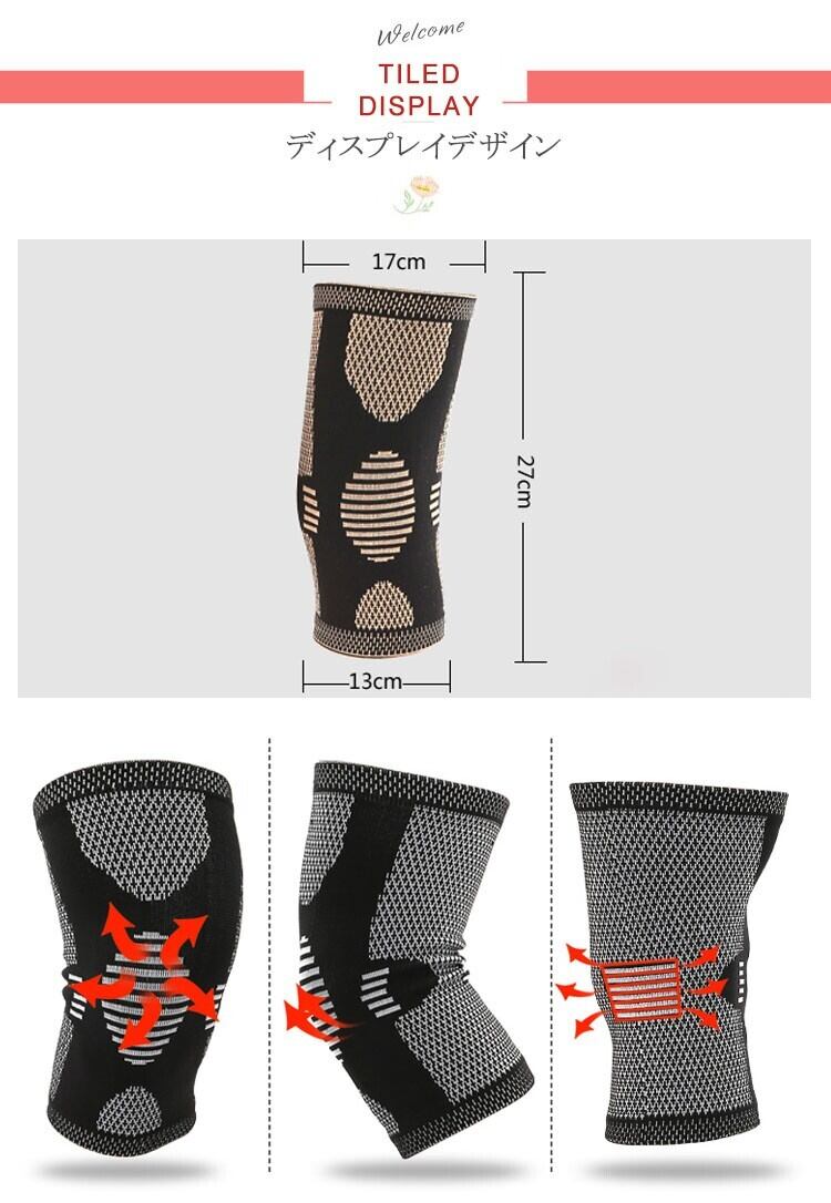 ★特徴:ウォーキングや、階段の上り下り、散歩などにも最適な膝(ひざ)サポーター 膝の曲げ伸ばしなどの動きを妨げることなく、膝周辺の筋肉の動きをサポート。 ストレッチも効いて特殊的な排汗素材で通気性にも優れています。 膝関節にやわらかくやさしくフィット。 とっても感触の良いサポーターです。 簡単に装着できる構造で長くご使用いただけます。