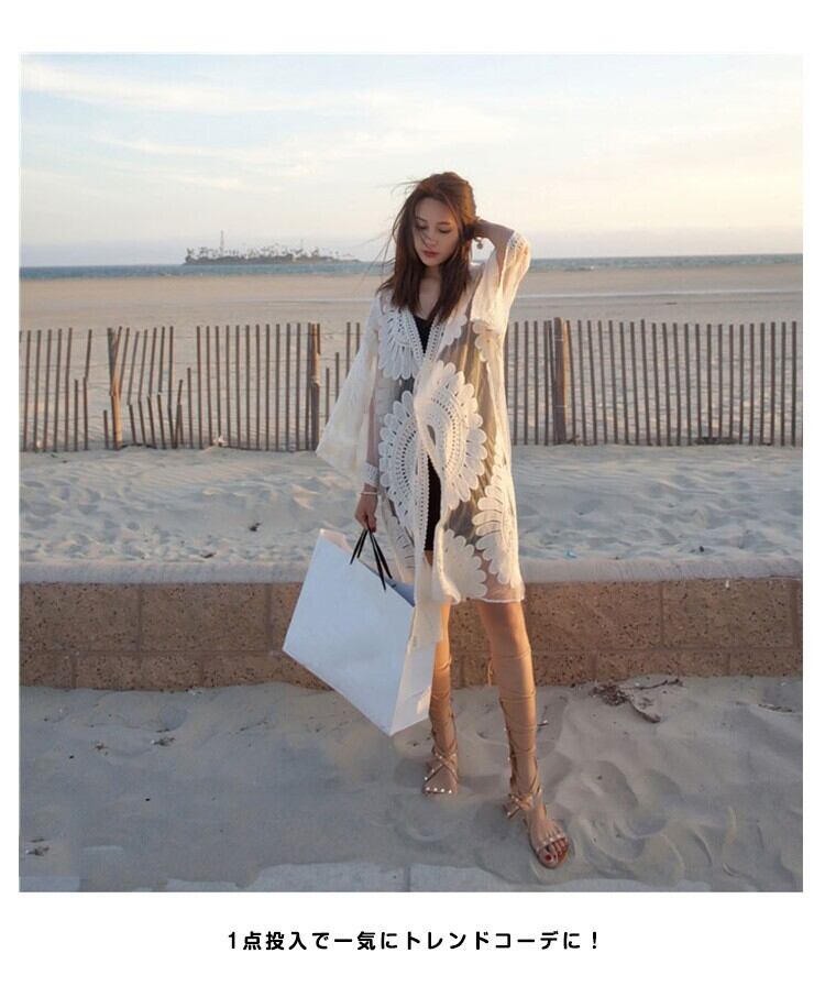 ★商品名:カーディガン 7分袖 透かし パーカー レース 花柄 レディース 薄手