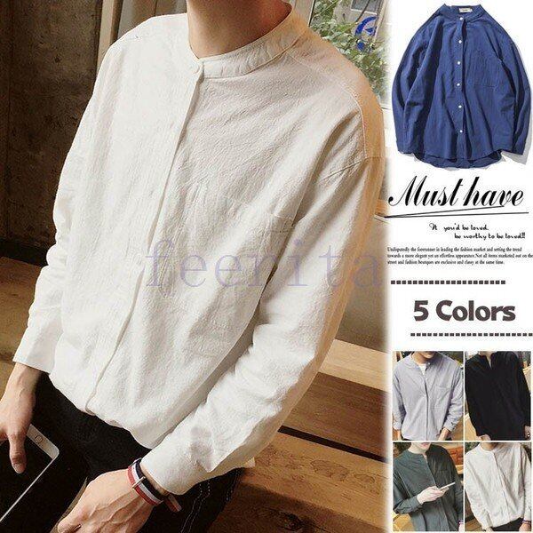 ★商品名:シャツ メンズ 長袖 カジュアルシャツ トップス スタンドカラー マオカラー 無地 シャツジャケット 大きいサイズ