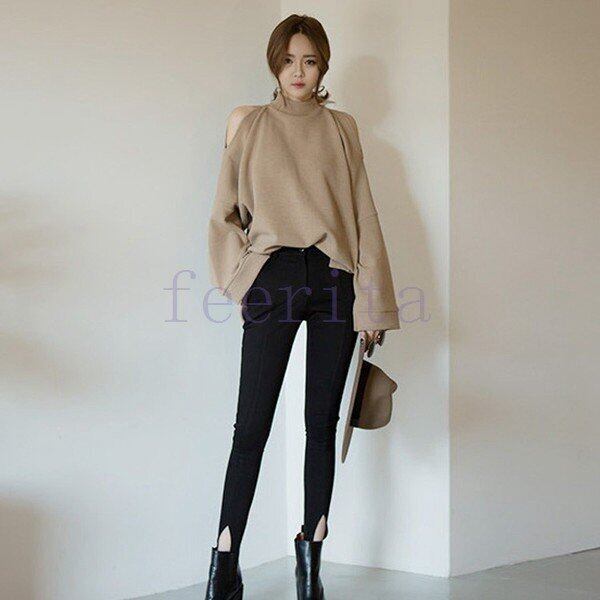 ★商品名:カットソー レディース ブラウス 長袖カットソー 肩だしカットソー オープンショルダー 肩開きインナー トップス ハイネック