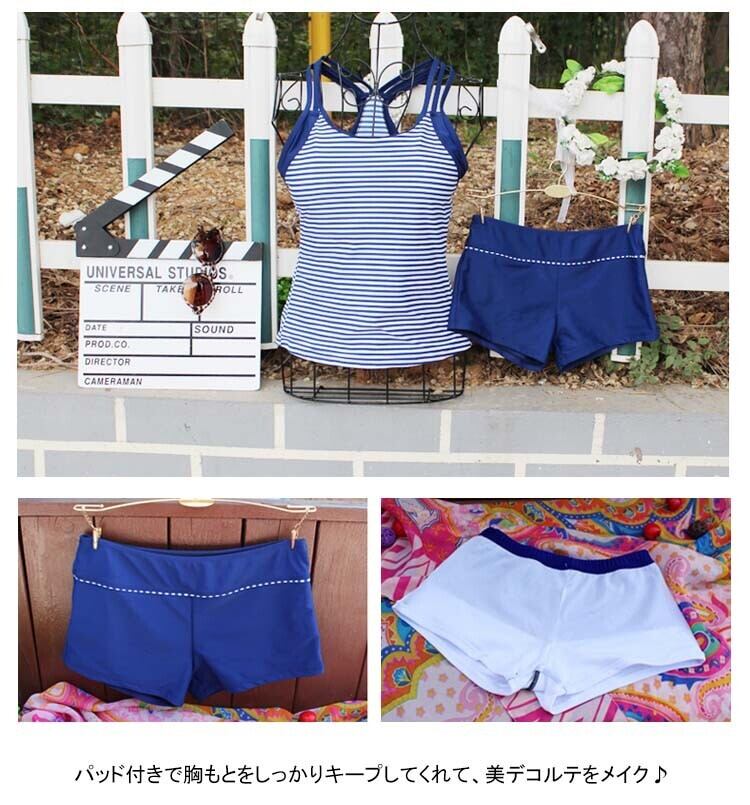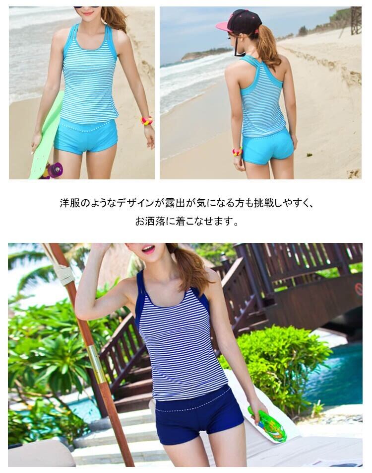 水着 2点セット レディース セパレート タンキニ キャミソール タンクトップ ショートパンツ ボーダー 体型カバー 女の子 3287