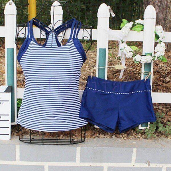 ★商品名:水着 2点セット レディース セパレート タンキニ キャミソール タンクトップ ショートパンツ ボーダー 体型カバー 女の子