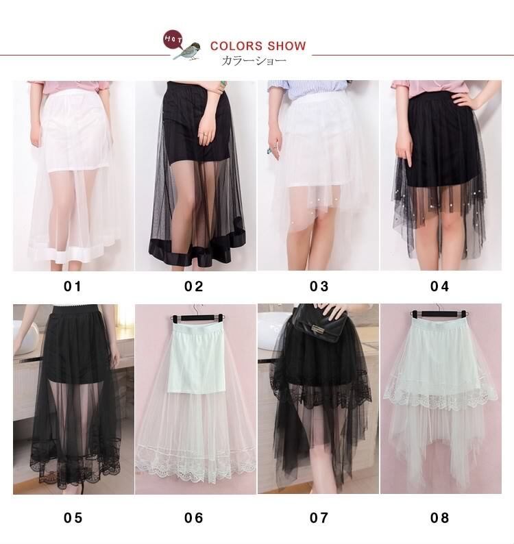 ★商品名:スカート レディース 膝下丈 ロング丈 裏地付き ウエストゴム チュールレーススカート フレア 大人 可愛い 韓国系