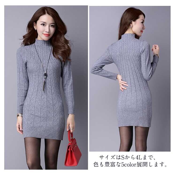 ワンピース ニット レディース ボトルネック ロング セーター ニットワンピース ミニ丈 タイト ニットワンピ ミニワンピ 秋 冬 長袖 大きいサイズ 3311