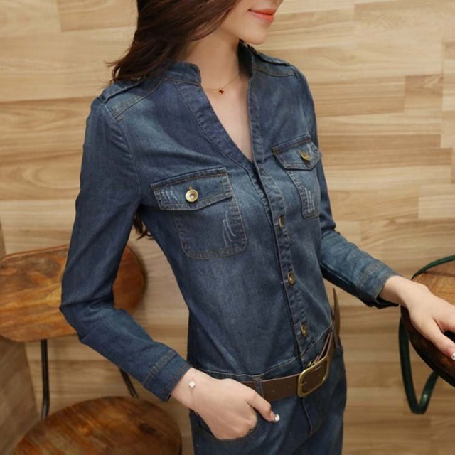 ワンピース 長袖 デニム ベルト スリム レディース ブルー デニムワンピース 3320