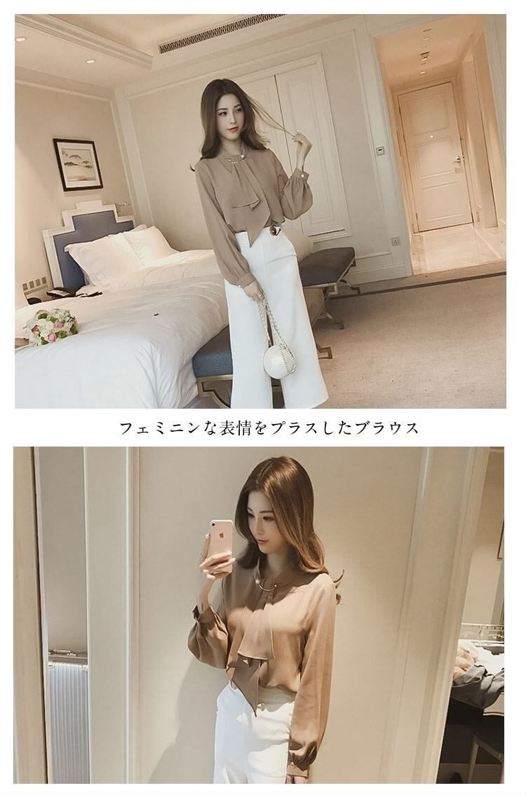 ブラウス 長袖 シフォン レディース プルオーバー シャツ 3387