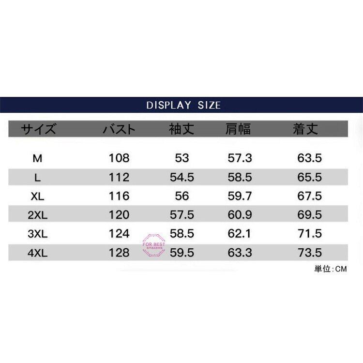 4XL:胸囲128 袖丈59.5 肩幅63.3 着丈73.5