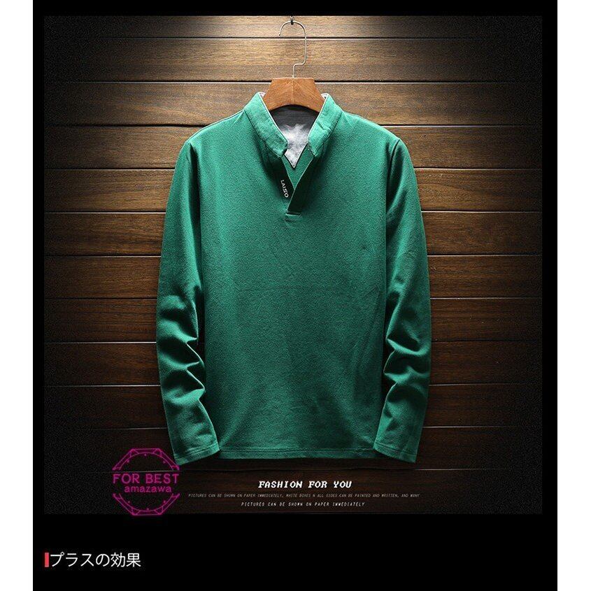 ★商品名:tシャツ メンズ カットソー ロングTシャツ 長袖 vネック 大きいサイズ ロンT