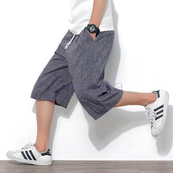 ★商品名:ハーフパンツ 7分丈 テーパードパンツ リネン メンズ 無地 7分丈 ワイドパンツ