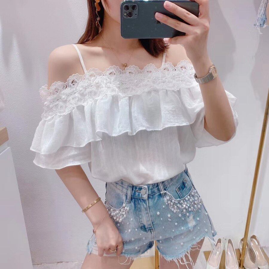 オフショルダー ブラウス レディース トップス 半袖 フリル ショート丈 3513