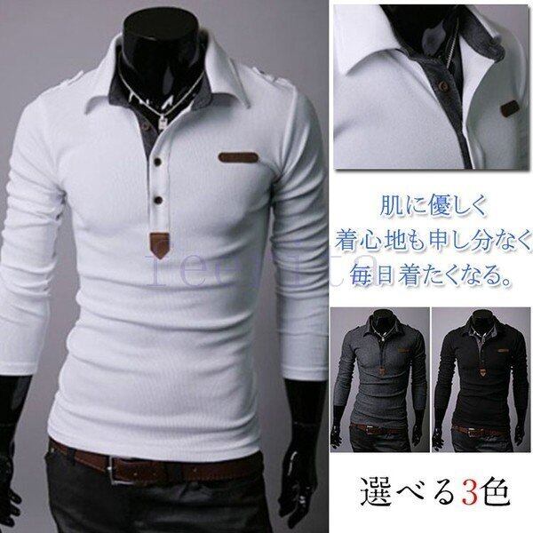 ポロシャツ メンズ 長袖 スリム カジュアルシャツ 長袖ポロシャツ 3541