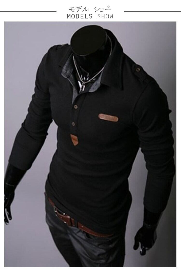 ★商品名:ポロシャツ メンズ 長袖 スリム カジュアルシャツ 長袖ポロシャツ