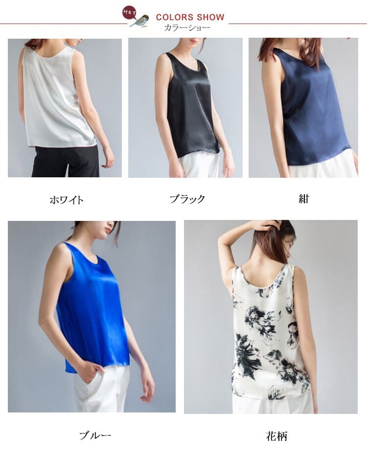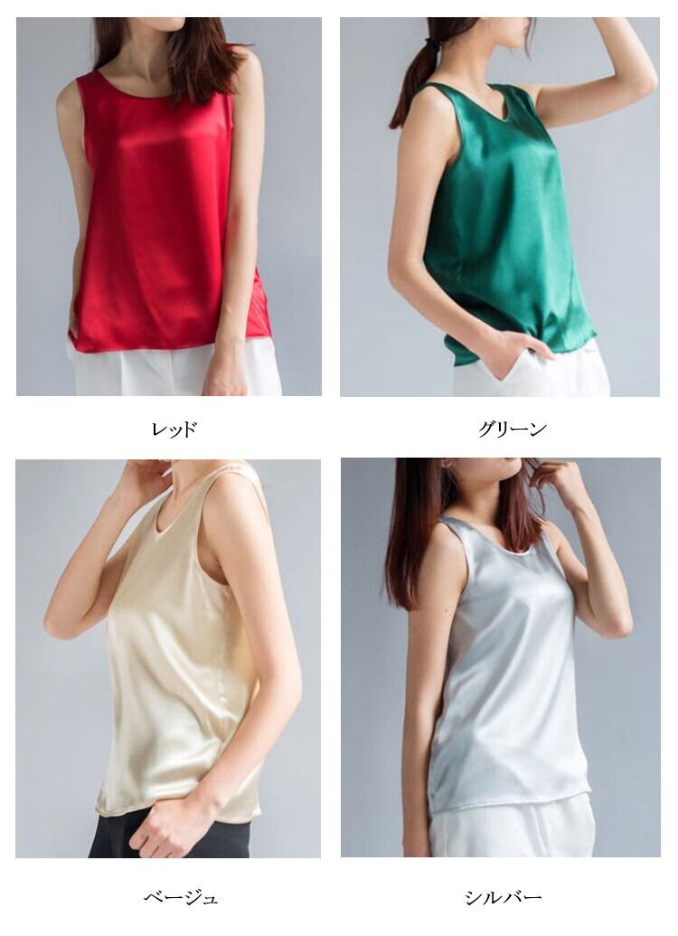 ★商品名:タンクトップ レディース インナー トップス Uネック 薄手 シルク サテン