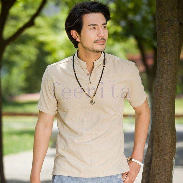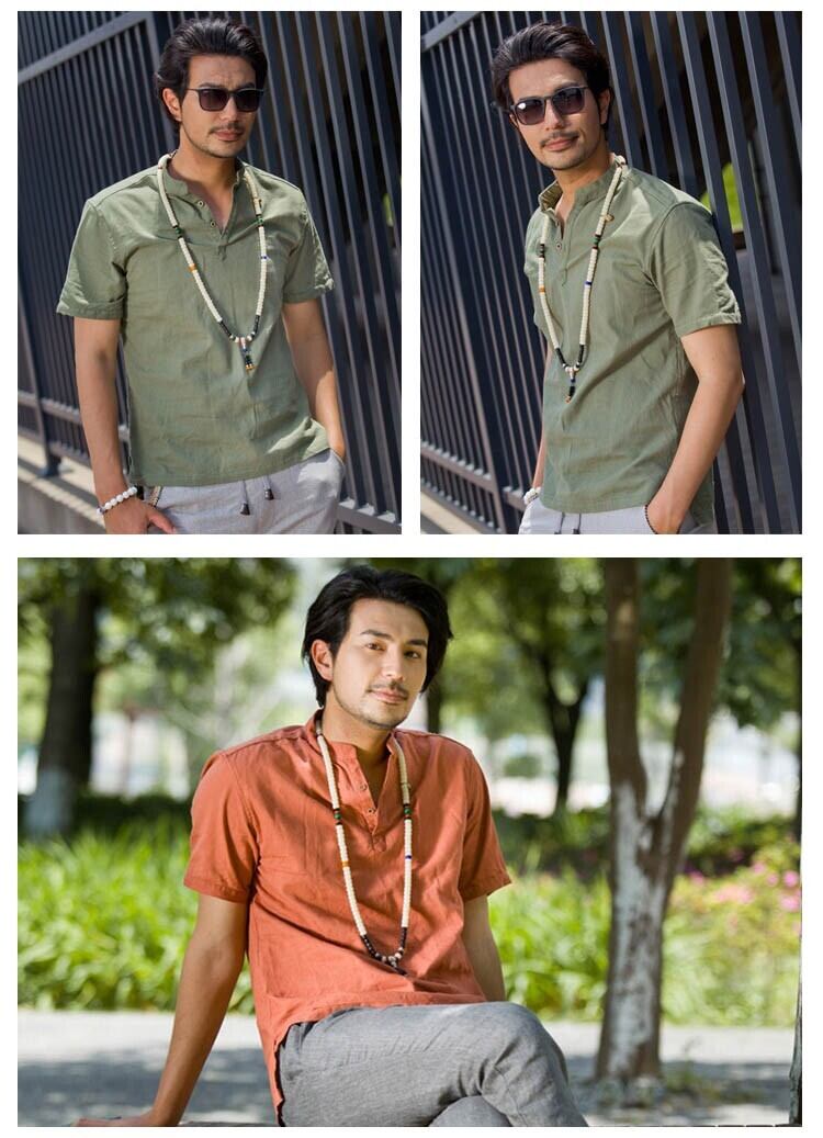 ★商品名:tシャツ リネンシャツ ヘンリーネック 綿麻 メンズ 夏