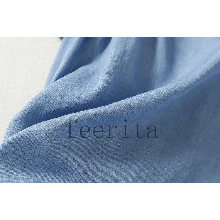 ★特徴:ダンガリーデニムのお洒落な風合いと、さりげない襟元フリルデザインが、大人女子の程よい甘さを演出。