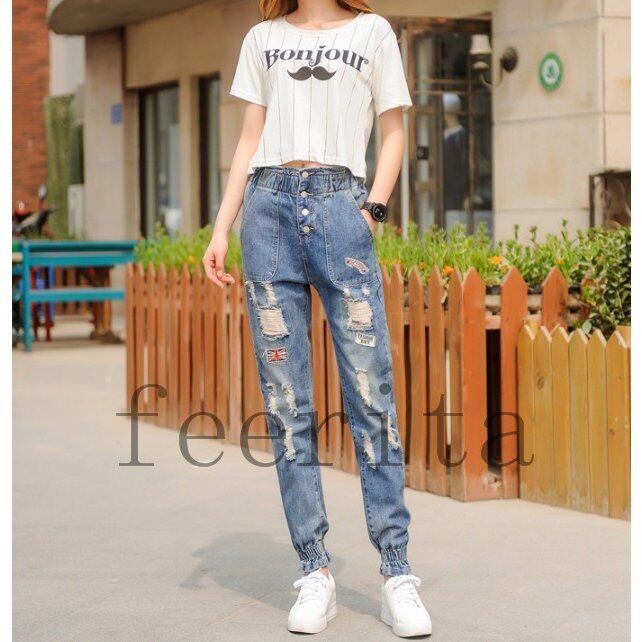 ジョガーパンツ デニムパンツ ジーンズ ダメージ加工 ゆったり 3562