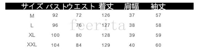 XXL:バスト104 ウエスト84 着丈129 肩幅40 袖丈60