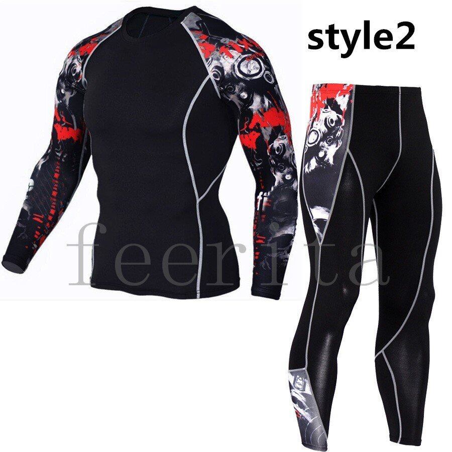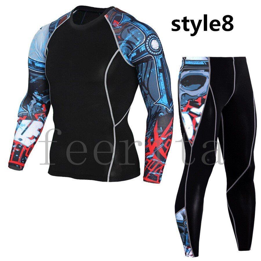 サイクリングジャージ 長袖 丸首 メンズ 上下セット 自転車 コンプレッションウェア 3672