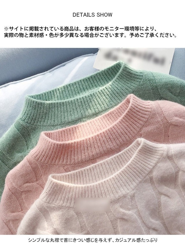 ★商品名:セーター レディース ニット ケーブル編み 丸襟 長袖 リブ編み ケーブルニット