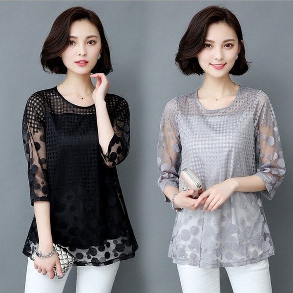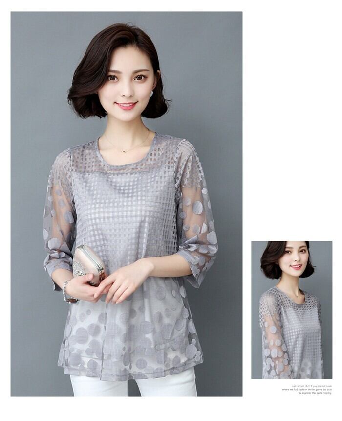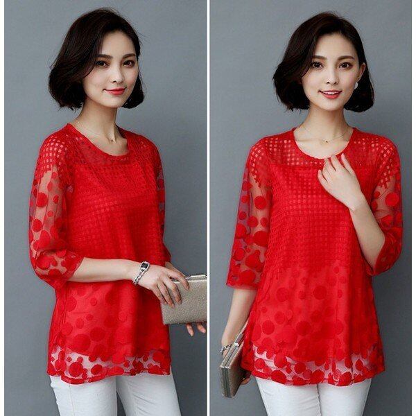 ブラウス 七分袖 レディース シフォンブラウス チュニック レース 大きいサイズ 3693