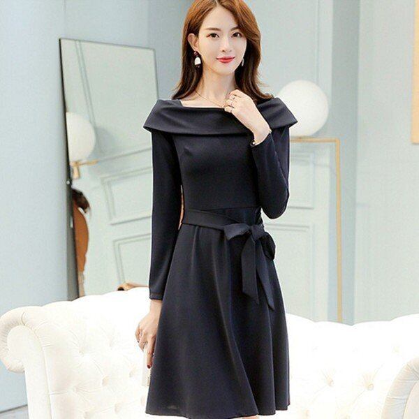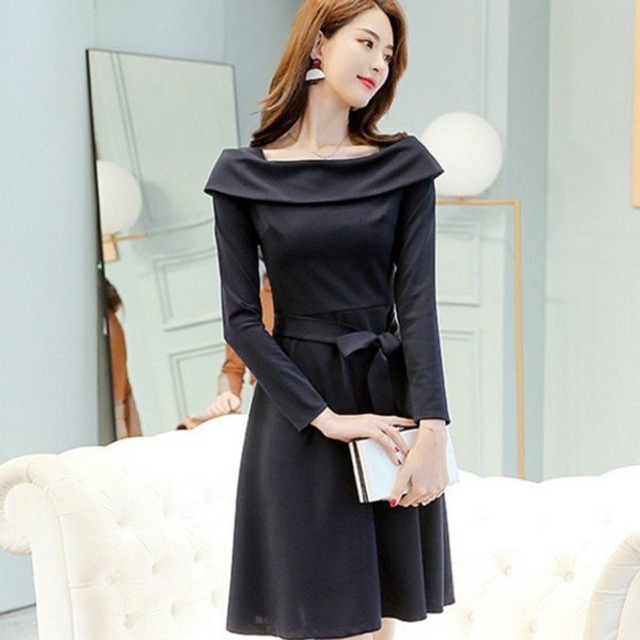 ワンピース レディース キレイめ オフショルダー 大きいサイズ 長袖 膝丈 3749