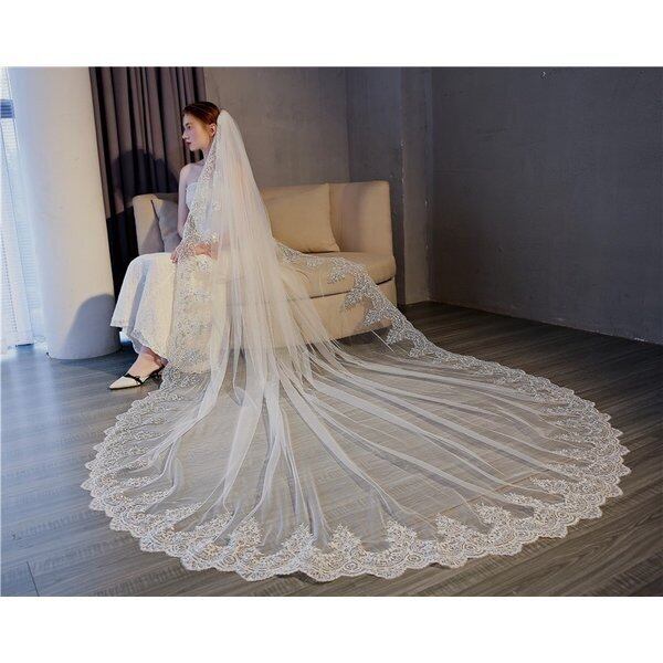 ウエディングベール ベール ロングベール レース 刺繍コーム付き 結婚式ベール 3790