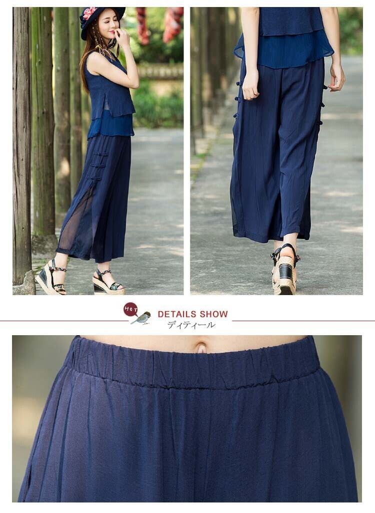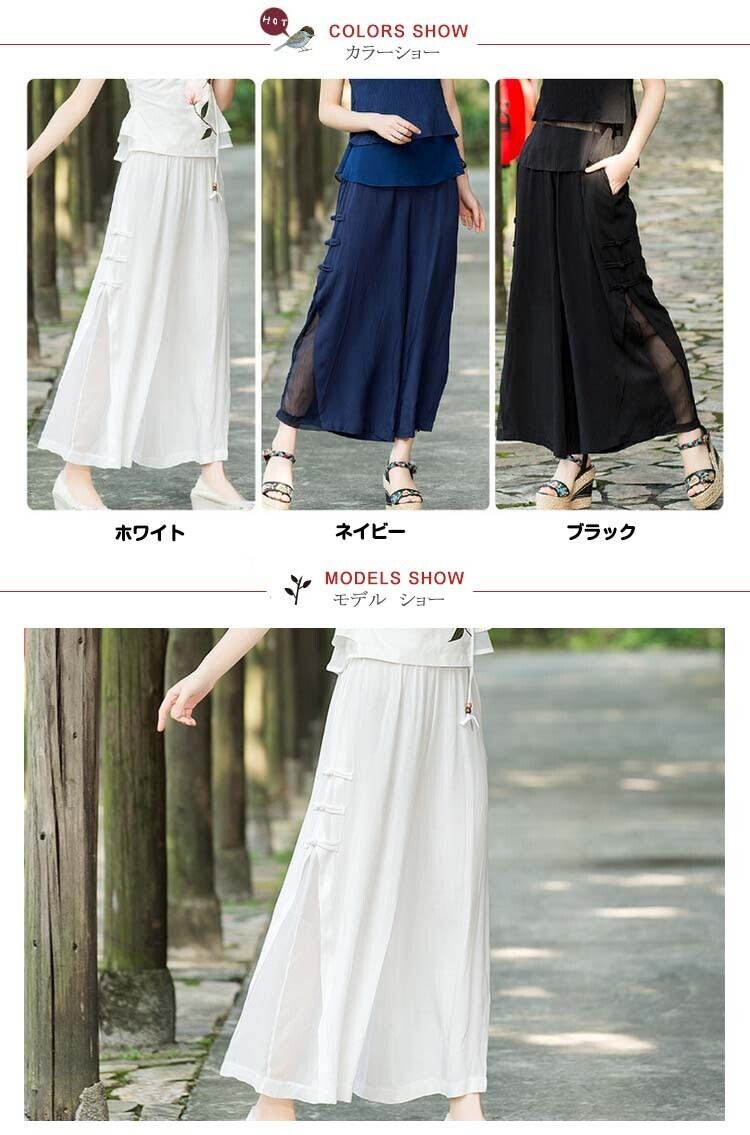 ワイドパンツ ガウチョパンツ エスニック風 シフォン ミモレ ロング丈 レディース 美脚 美尻 3795