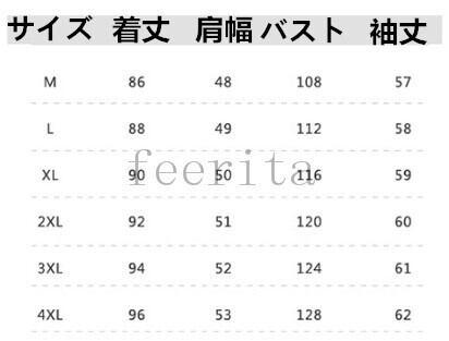 3XL:着丈94 肩幅52 バスト124 袖丈61