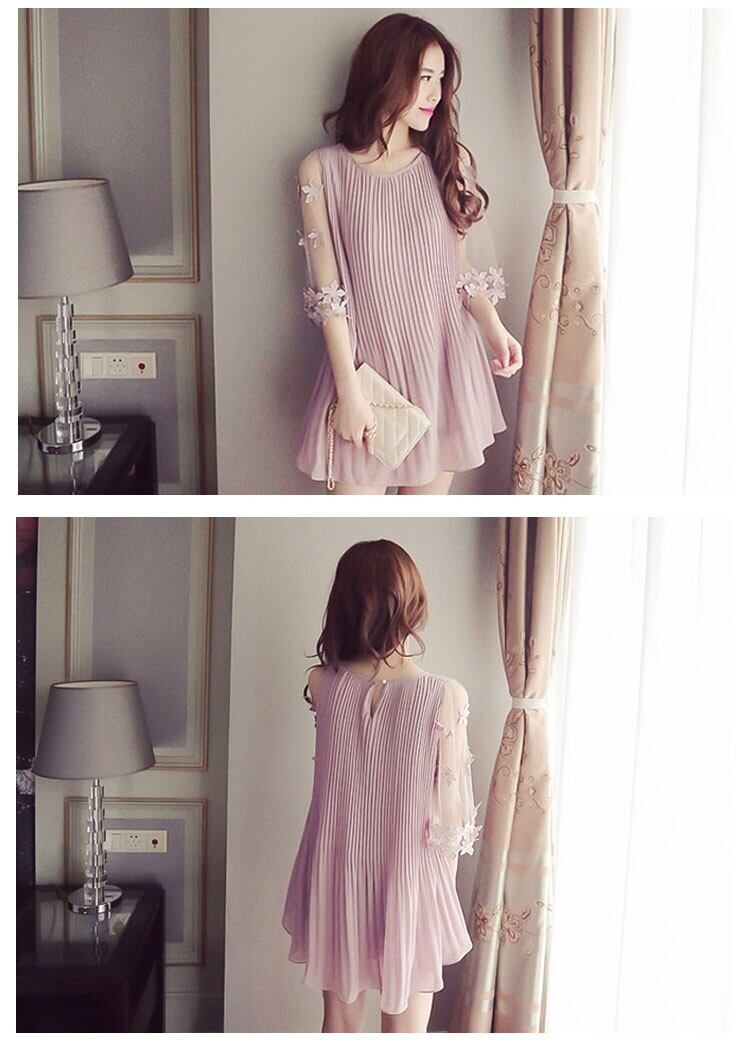 ★商品名:ワンピース シフォンワンピース 7分袖 レースドレス パーティードレス
