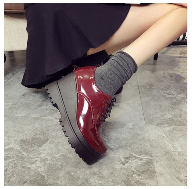 ★商品名:レースアップシューズ レザーシューズ 厚底 ウェッジソール レディース