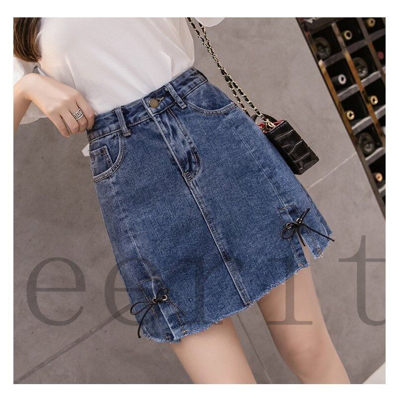 デニムスカート 2color スカート デニム レディース ミニ ハイウエスト Aライン 台形 3831