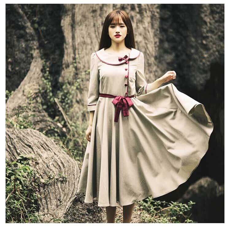 ★商品名:ワンピース 長袖 マキシ丈 マキシワンピース フレアワンピース レトロデザイン アンティーク風